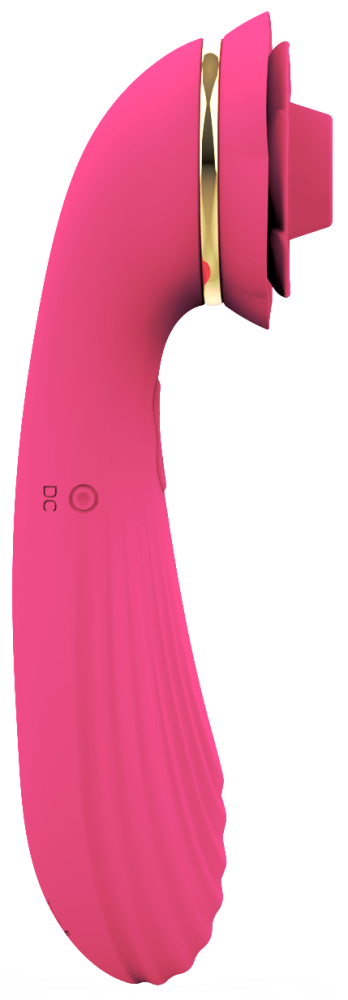 Tamno ružičasta boja vibratora ukrašena zlatnim rubovima asocira na eleganciju, ljubav, romantiku i nježnost. Potiče nježne dodire i ispunjenje hrabrih fantazija.