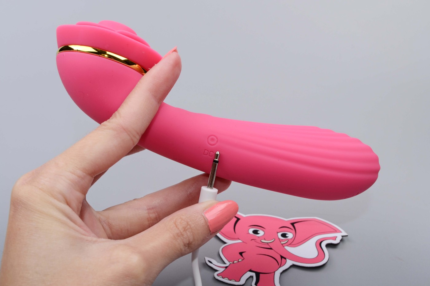 Vibrator pod pritiskom je djelomično napunjen u tvornici, ali preporučujemo da ga potpuno napunite prije prve upotrebe. To će produžiti vijek trajanja baterije. Uređaj se puni modernim USB punjenjem. Lagano gurnite jedan kraj kabela s konektorom u slijepi priključak koji se nalazi na ručki igračke ispod DC oznake. Međutim, nemojte umetati konektor do kraja. Vibrator se neće puniti. Spojite suprotni kraj kabela na power bank ili adapter za mobilni telefon.