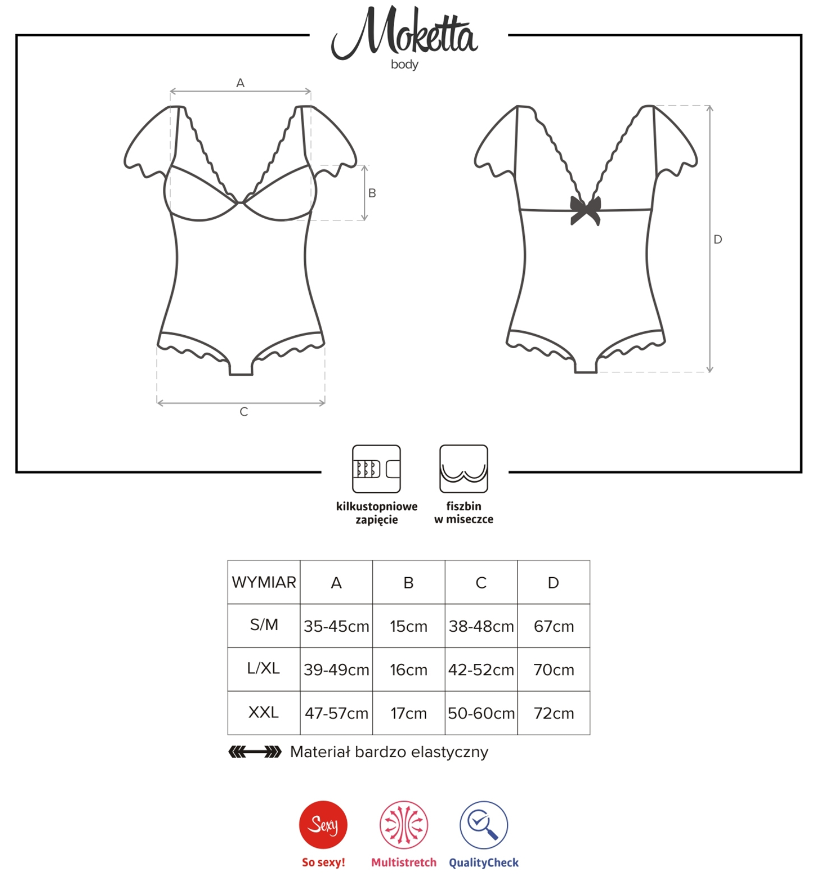 Dopustite da vas razmazi ovaj nevjerojatno senzualan i ženstven bodi u tamnocrnoj boji koji će vas doslovno uvući u čaroban svijet tajnih i ispunjenih želja.